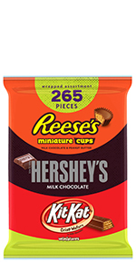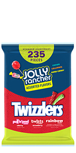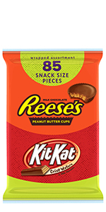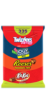 ● HERSHEY’S candy assortment includes TWIZZLERS PULL ‘N’ PEEL candy, JOLLY RANCHER Stix Hard Candy, KIT KAT miniature candy bars and REESE’S miniature peanut butter cups